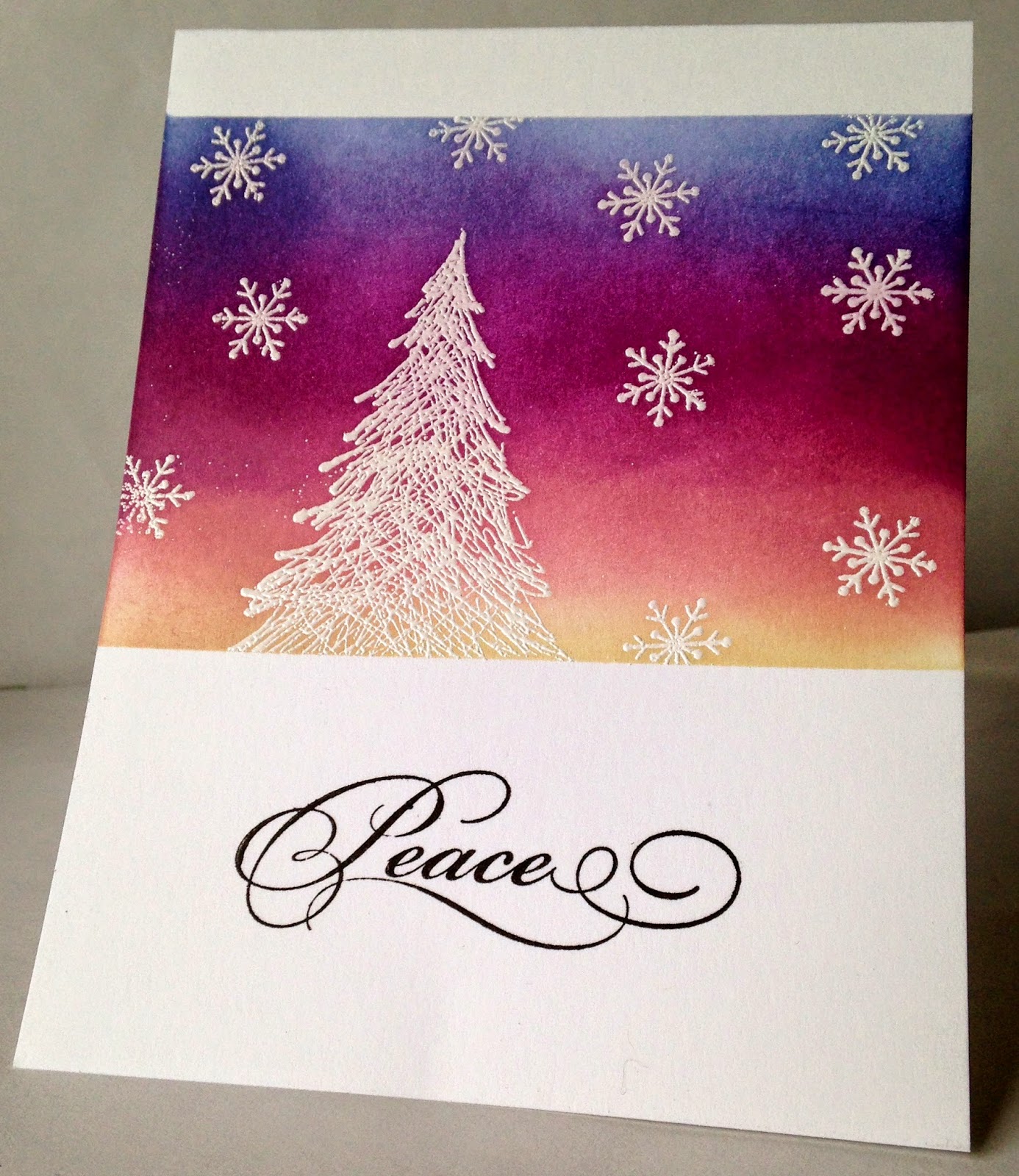 I am back this morning with some more Christmas cards I made this year. The snowman is a new stamp I got this year. It is from Stampendous. I never buy wood stamps anymore but this guy was so cute, I just could not resist. The Nativity is a set from Paper Smooches and it is Pinterest inspired. The third card is blog inspired. I am guessing from Jennifer McGuire but not positive. I used trees from a Paper Trey Ink set and then cut the words out and placed them back in. That's all for today!